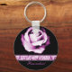 Mantenha as teclas organizadas com este design de chaveiro único e elegante, com um rosa de ametista, borda de lavanda e texto personalizável.