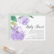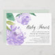 O convite para chás de fraldas chic apresenta ilustrações de flores de pénia de cor d'água em roxo violeta pastel, acentuado com folhas verdes e peludas. Personalize com os detalhes do seu chá de fraldas alinhados à direita. Cartões invertidos a verde-névoa-claro.