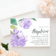 O convite para batismo chic para a sua bebê apresenta ilustrações de flor de peônias de aquarela em elegante roxo lavanda, acentuado com folhas verdes e peludas. Personalize com sua cerimônia de batismo e detalhes de celebração alinhados à direita. Cartões invertidos para verde-menta pastel.