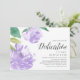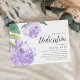 Convites florais bonitos para a dedicação do seu bebê... têm peônias de aquarela em púrpura pastel, acentuadas com verde-luxuoso. Personalize com os detalhes de dedicação do seu bebê alinhados à direita e embelezados com a caligrafia. Convites inversos a verde-menta pálido.