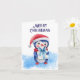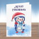 Feliz Natal, pinguim branco e azul bonito em pé no gelo e segurando um presente embrulhado é apresentado neste cartão de Natal de 4 x 5,6". Elementos correspondentes mínimos são dentro e voltados. O guião elegante é um azul escuro. Altere facilmente o complemento ou remova o texto na frente, dentro (colega de trabalho) e de volta para torná-lo seu usando o Modelo fornecido. Envelope branco incluído ou marca "nenhum" para preço reduzido. Também disponível no tamanho de 5 x 7". Consulte "Sobre este produto" ao lado para obter mais informações.
