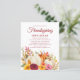 Janto de Ação de Amizade/Ação de Graças convite aberto à apresentação de propostas sobre o documento orçamental. Flores de outono alegres e folhas de outono com abóboras de aquarelas boho e texto de guião em cores festivas. Clique em Personalizar para alterar o texto, as cores ou o plano de fundo.