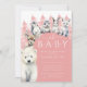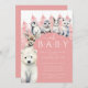 Este belo convite para o chá de fraldas de inverno inclui amigos animais árcticos, incluindo um urso polar, renas, pinguim, foca, coelho e lobo, com um pano de fundo de árvores de neve. O convite é colocado sobre um fundo cor-de-rosa arquitetado com as palavras "Oh Baby!" em uma fonte divertida no topo. A data, a hora e o local do chá de fraldas estão listados abaixo em uma fonte saborosa. Os adoráveis amigos animais árticos e o tema do inverno adicionam um toque de capricho e diversão, e o design geral é perfeito para celebrar a chegada da sua garotinha com seus entes queridos de uma forma festiva e animadora.