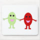 Moinho branco com um desenho bonito de uma uva vermelha sorridente com uma uva verde sorridente, ambas têm olhos negros brilhantes e boca rosa. Clique no botão personalizar para escolher entre um intervalo de diferentes mousepads de cor.