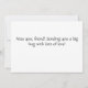 Uma design com uma garota espantosa e seu gato balançando com texto, "Bons amigos são como estrelas. Você nem sempre os vê, mas você sabe que eles estão lá." Na parte de trás do cartão lê-se: "Sente sua falta, amigo! Enviando-lhe um grande abraço com muito amor!"