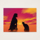 Silhueta preta de um gato ao lado do cachorro sentado e olhando para o lindo pôr do sol vermelho