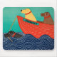 Mousepad com um laboratório negro puxando o barco "Amizade" com um laboratório amarelo e marrom no barco