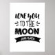 Amo-vos à lua e à impressão de poster de trás apresenta a tipografia moderna escrita à mão. Excelente para um quarto infantil e combina com um estilo decorador monocromático.