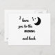 Este cartão postal adorável tem as palavras que te amo na lua e de volta a preto. Com lua e estrelas em preto.