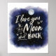 O texto Whimsical foi carinhosamente projetado para enviar uma mensagem a um ente querido. Eu te amo na lua e de volta em uma escrita branca em um fundo inspirado em galáxias.