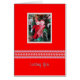 Cartão vermelho com uma fita computadorizada parecida com lata atravessando a placa sob a imagem. Amo-te na frente do cartão com o Sr./Sra. Papais noeis.