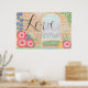 Um lembrete e um desafio para seguir o caminho alto, ilustrado num tema floral colorido, enquadrando uma porta convidativa ao bem-estar. Ilustração totalmente desenhada e escrita. Texto: "Amor de Qualquer Forma"