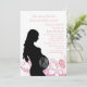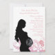 Caracterize o *ultrasound do bebê neste design bonito do chá de fraldas. O fundo branco tem flores cor-de-rosa e brancas e redemoinhos e uma silhueta de uma mulher gravida com um bebê em seu ventre. *Do para não ter um ultra-som do bebê? Use este ultra-som genérico fornecido.