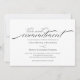 Este é um clássico convite de casamento preto e branco. O design apresenta uma fonte elegante para adicionar um toque de estilo ao seu dia especial. Personalize-o com uma fotografia de casamento nas costas, ou deixe a simplicidade clássica comunicar a beleza da sua história de amor.