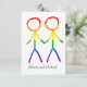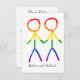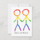 Esta placa RSVP apresenta uma design simples e bonita a ser incluída com seus convites de casamento. O gráfico representa dois homens, na forma de figuras elegantes de palitos, de mãos dadas. Os números são coloridos num belo arco-íris, simbolizando amor e diversidade. Este cartão é uma forma maravilhosa de trazer um toque coeso e significativo à sua papelaria, ao mesmo tempo que fornece aos convidados uma forma clara e elegante de responder. j