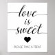 Elegante Font Wedding Love é doce - Take a Treat Sign Este elegante e simples sinal de Mesa de Favor de Casamento é perfeito para o seu casamento - funciona perfeitamente com qualquer decoração. Se preferir impressão em casa, visite nosso compro Etsy em https://www.etsy.com/shop/IRISANDIVYPRINTABLES