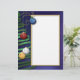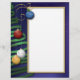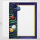 Saudações à sua família e amigos com uma carta neste elegante e elegante jornal de Natal. O fundo azul profundo com a fita-árvore, estrelas, e belas bolas de Natal fazem um adorável cartões de natal ornamentado.