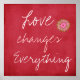 O amor muda tudo Poster — fundo angustiado vermelho com a citação do amor, "o amor muda tudo" e um sotaque floral retrô. A decoração doméstica inspiradora com citações e faz um presente excelente para qualquer um.