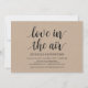 Amor no ar, cartão de convite de recepção de casamento às pressas. Este cartão de convite temático de casamento às pressas em kraft rústico é perfeito para a recepção do seu casamento e festa de celebração pós-casamento. Adicione seus detalhes em fonte / letra preta correspondente.