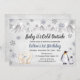 primeiro aniversario Primeiro Aniversário É Frio Fora do Inverno Floco de Neve Montanhas Glitter Urso Polar Pinguins Animais Aniversário Convite