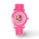 Relógio cor-de-rosa com cintilação que diz, "Amor" com design floral licenciado pela Fábrica de Gráficos, com o logotipo MoonDreams Music