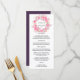 Nosso cardápio de casamento com estilo de jardim apresenta seus pratos de entrada, principais e sobremesas em letras elegantes, com seus nomes circulados por uma grinalda botânica rosa de rosas em aquarela e folhas e folhagens. Coordena com nossa coleção de casamento Pink Love Wreath.