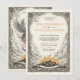 Um convite de casamento em estilo retrô com dois fenixes apaixonados, subindo juntos das próprias chamas e cinzas. Ele simboliza um amor que se renova e se torna mais forte com o tempo.