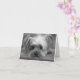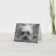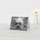 Nada diz fofo como um cachorrinho Yorkshire Terrier! Este cartão de cumprimentos divertido apresenta um retrato em preto e branco de um adorável filhote de Yorkie descansando em um alpendre de madeira. Ela está pronta para ajudá-lo a enviar cumprimentos a familiares e amigos.