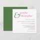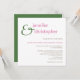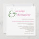 Convite contemporâneo do casamento dos princípios do casamento de ColorScheme. 5,25" x 5,25" horizontalmente cartões com envelopes brancos. O texto e o reverso no casamento colorem a samambaia rosa verde e thulian.