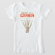 Uma equipe de jogador criativo com uma mão de esqueleto marcada com teclas de teclado (WASD, Shift/Ctrl, Space, A, D), ilustrando a anatomia essencial de cada entusiasta de jogos de PC. Perfeito para gamers de computador e fãs de designs anatômicos peculiares, Anatomia de uma camisa de teclado de esqueleto de jogador