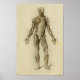 Vintage 1848 ilustração anatômica do corpo humano. Mostrando a visão anterior dos músculos superficiais e profundos.