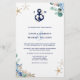 O convite para casamento. Design de casamento de praia alegre e criativa que combina elementos náuticos (âncora marinho, nó, estrela) com belos buquês florais de hydrangea azul, flores cor-de-rosa e brancas e cor-de-rosa, folhas de eucalipto, dália e verde-verde. Monogramas da Noiva e do Groom. Marinho. Verdadeiramente único. Ideal para casamento de praia, casamento náutico, casamento de destino, casamento de verão.