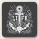 Proteja suas superfícies em estilo marítimo ousado com esta porta copos de âncora gráfica. Apresentando tipografia vintage, floresce e a poderosa palavra "LIFE", esta design traz um charme náutico robusto a qualquer bar, mesa ou mesa de café. Um pequeno presente excelente para marinheiros, amantes do oceano, ou qualquer um que viva a vida com propósito e força.