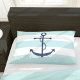 Rapariga e design de ancoragem e listras com tema náutico.