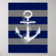 Âncora, Cinza e azul, Impressão de Arte de Parede