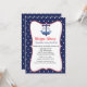 Velejando os mares! Os bebês gêmeos estão a caminho. Este convite para chás de fraldas náuticos tem um fundo azul escuro com pequenas bolinhas brancas em ambos os lados. Há uma âncora azul com espirais e duas baleias azuis giras na âncora no centro superior. O centro é uma etiqueta branca esboçada em vermelho onde você personaliza com as informações do seu partido. Veja nossos muitos outros designs e produtos que temos em nossa loja.