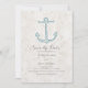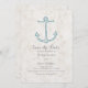 Perfeito para um casamento temático náutico é esta âncora rustica Salve o Anúncio de data com uma âncora azul escura de barco sobre um fundo de mármore claro bege. Este convite clássico e simples para salvar a data é fácil de personalizar com seus detalhes de casamento. Localize mais opções de personalização clicando em Personalizar.