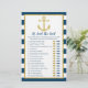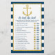 O elegante que ele disse que os cartões de jogo são uma atividade de Chá de panela divertida. Simplesmente passá-los durante o Chá de panela onde os convidados se divertirão adivinhando quem disse cada declaração. Este elegante design náutico tem uma falso brilho dourado com azul e branco marinho.