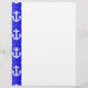 Âncoras náuticas brancas sobre fundo azul. Cabeça de letra personalizada com padrão de decor náutico.