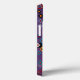 A vibrant, symmetrical fine art illustration inspired by traditional Andalusian weaving, featuring bold geometric diamonds in deep violet, saffron, and soft pink, accented with intricate tribal-style motifs and a classic red decorative border.