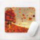 No cenário de um mapa solitário numa encosta, as folhas laranja e amarelas do outono flutuam sobre a brisa.