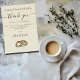 Traga um toque de elegância e gratidão sincera para a celebração do seu casamento com este cartão de mesa lindamente confeccionado, apresentando uma obra de arte de anéis de casamento em ouro clássico e tipografia em letra cursiva refinada. Projetado para dar as boas-vindas a familiares e amigos aos seus lugares, o cartão combina uma mensagem de agradecimento caloroso com os nomes do casal recém-casado e espaço para detalhes da refeição ou dos convidados. Uma saudação amigável e inclusiva está no topo do cartão, enquanto anéis de ouro interligados e divertidos adicionam um sutil e alegre destaque. O layout sofisticado, a paleta de cores suaves e os destaques delicados em ouro combinam função e sentimento, criando um souvenir que expressa sua gratidão e estabelece um tom alegre para o seu dia especial. Ideal para qualquer recepção moderna ou clássica, este cartão de mesa garante que