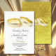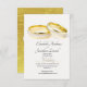 Um convite elegante com alianças de casamento dando ao convite uma sensação muito tradicional. Os anéis estão sobre um simples fundo branco com a tipografia em uma fonte moderna. A fonte está novamente em preto simples. Um bar de cor dourada sublinha a palavra casamento. O inverso do convite é dourado, repetindo-se os dois anéis. O convite é facilmente personalizável para suas informações.