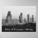 Poster com fotografia a preto e branco do anel neolítico de pedras Brodgar, 5000 anos, em Orkney, Escócia