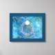 Um anel de filigres prateado estilizado, ornamentado, coberto de pérolas brancas-nubladas e colocado com uma gema branca redonda de solteiro, com uma estrela a brilhar das suas profundidades, colocado contra um pano de fundo de fractais azuis e aquosos.