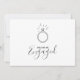 Anuncie o seu noivado com este charmoso cartão com um estilo de desenho animado de um anel de diamante elegante contra um fundo branco minimalista. Fontes de letra script bonitas destacam a mensagem "Estamos Noivos" e os seus nomes, enquanto o espaço abaixo permite personalizar detalhes da festa, data e informações da celebração para se adequar ao seu dia especial. A combinação de ilustração divertida e tipografia sofisticada oferece uma maneira fresca e memorável de compartilhar a sua notícia feliz.