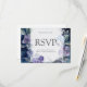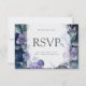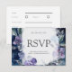 Um design sofisticado e lindo com anêmonas azuis e roxas rodeadas por folhagens verdes. O fundo azul escuro tem um aspecto rústico desgastado, criando um contraste maravilhoso com os florais pintados elegantes.