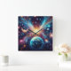 Relógio quadrado com anjos. Imagens de Anjos no céu acima da Terra com galáxias ao fundo.