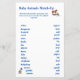Precioso de jogos de Combinação de Animais Assortados por designs e Presentes Bebês apresenta a imagem de um cavalo e de um canguru no canto superior direito. A imagem de uma zebra bebê aparece no canto inferior esquerdo. . O título diz, "Baby Animal Match-Up". As instruções para o jogo aparecem abaixo do título. As respostas estão de volta. Perfeito para um chá de fraldas, o Jogo de Combinação de Animais Bebês é projetado para coordenar com o chá de fraldas temático e os acessórios de berçário "Animais Assortados", sempre populares. Vem em uma variedade de cores.