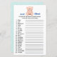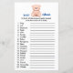A "Folha do Jogo de Nomes de Bebês Animais" é uma atividade adorável para chá de bebê, onde os convidados podem mostrar seus conhecimentos sobre o reino animal. Ela apresenta uma lista de 20 animais, e os participantes devem escrever o termo correspondente ao filhote de cada animal. No topo, uma imagem de um ursinho de pelúcia fofinho define o tema infantil. Este jogo não é apenas um desafio delicioso para os amantes de animais, mas também uma doce homenagem ao pequeno homenageado que está a caminho. É um quebra-gelo perfeito e uma ótima maneira de adicionar diversão educativa à celebração do chá de bebê masculino.